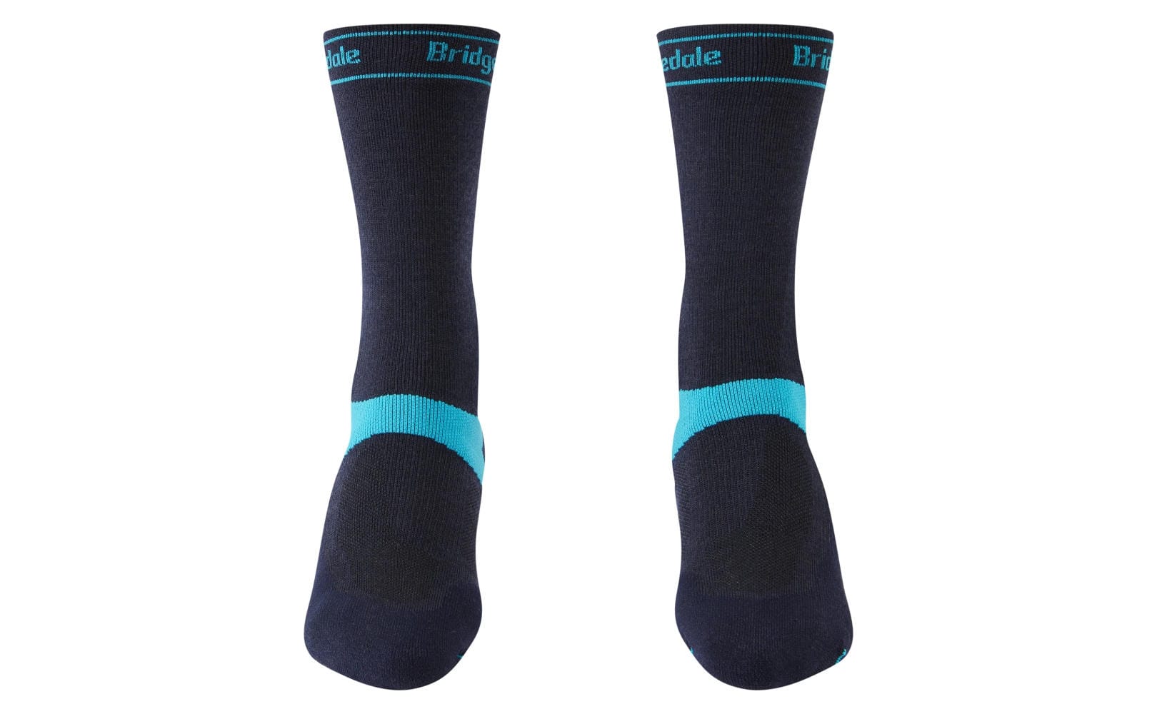 Specifically designed for Mountain Bikers, by Mountain Bikers over a three-year development process, the Bridgedale MTB sock is a game changer in terms of comfort and durability. The Mid-Season Weight T2 Merino Sport combines strategic pads with overfoot mesh ventilation to create the perfect weight for Spring and Autumn, and comes with a host of unique features. An anatomical vibration dampening footbed, designed to alleviate the underfoot discomfort from the pedals as you hurtle downhill. Your achilles and ankle are protected with strategically knit pads. The specifically designed left and right socks give you the padding and protection exactly where you need it on the outside of your foot and around your toes. The Sport Fit gives supportive compression for stability and balance around the ankle and mid foot and the tighter knit cuff gives an extended close fit to prevent debris getting in and means your sock won’t slip down or bunch in your footwear. Merino Sport Fusion Technology provides resilient padding, moisture wicking, odour control and outstanding durability on the trails. The ultimate sock for those cool Spring and Autumn MTB days.