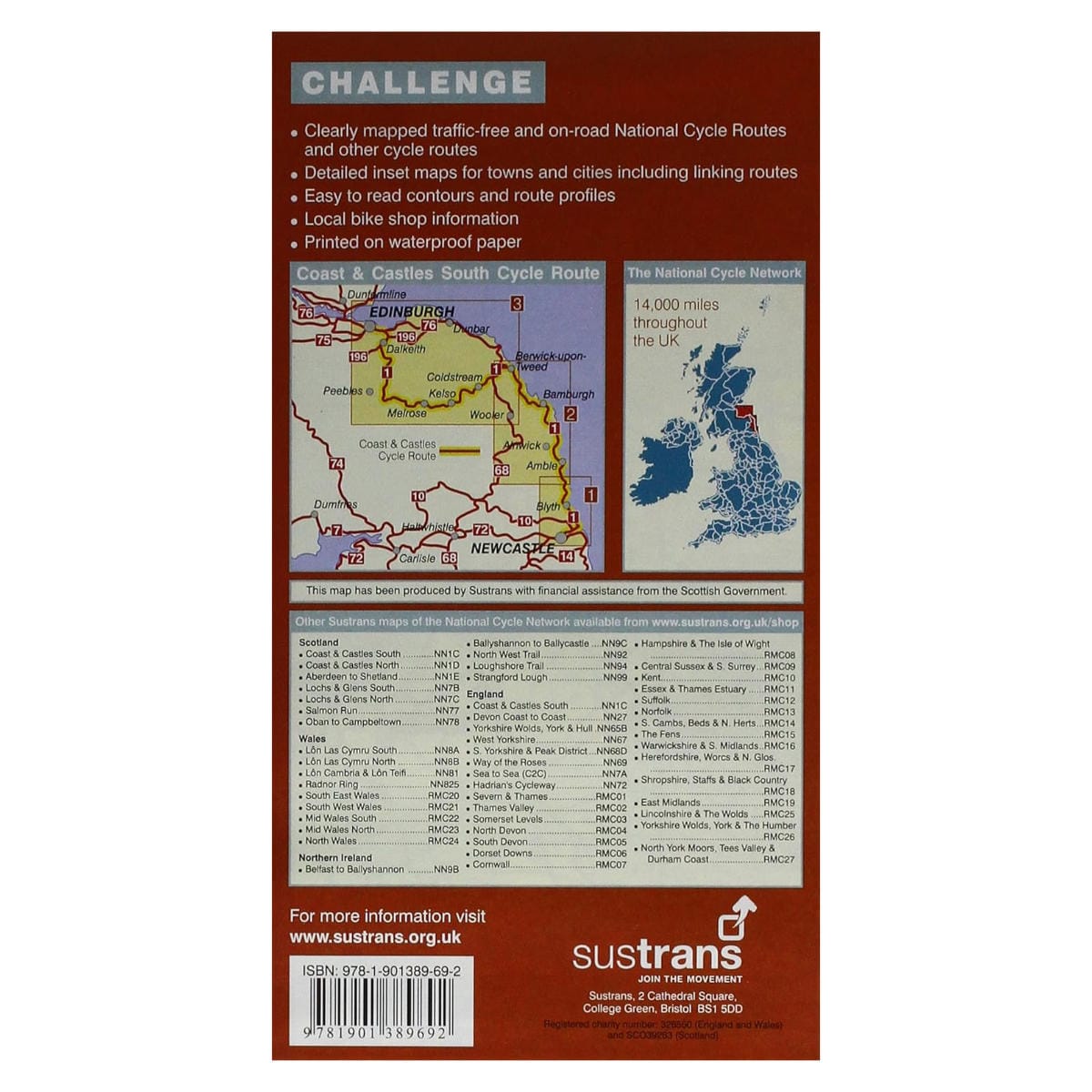 “The Discover” series of Sustrans official cycle route maps provides clearly mapped cycle routes on traffic-free paths, quiet lanes and traffic-calmed roads.This is the May 2008 edition of Sustrans official cycle route map covering the 200 miles (322km) National Cycle Network route between Newcastle and Edinburgh, plus other routes in Northumberland, the Scottish Borders and East Lothian.It includes a fold-out, full colour, waterproof map with a scale of 1:100,000. It includes a splash-proof plastic sleeve. It provides region-wide mapping. It offers visitor information and detailed routes through towns.