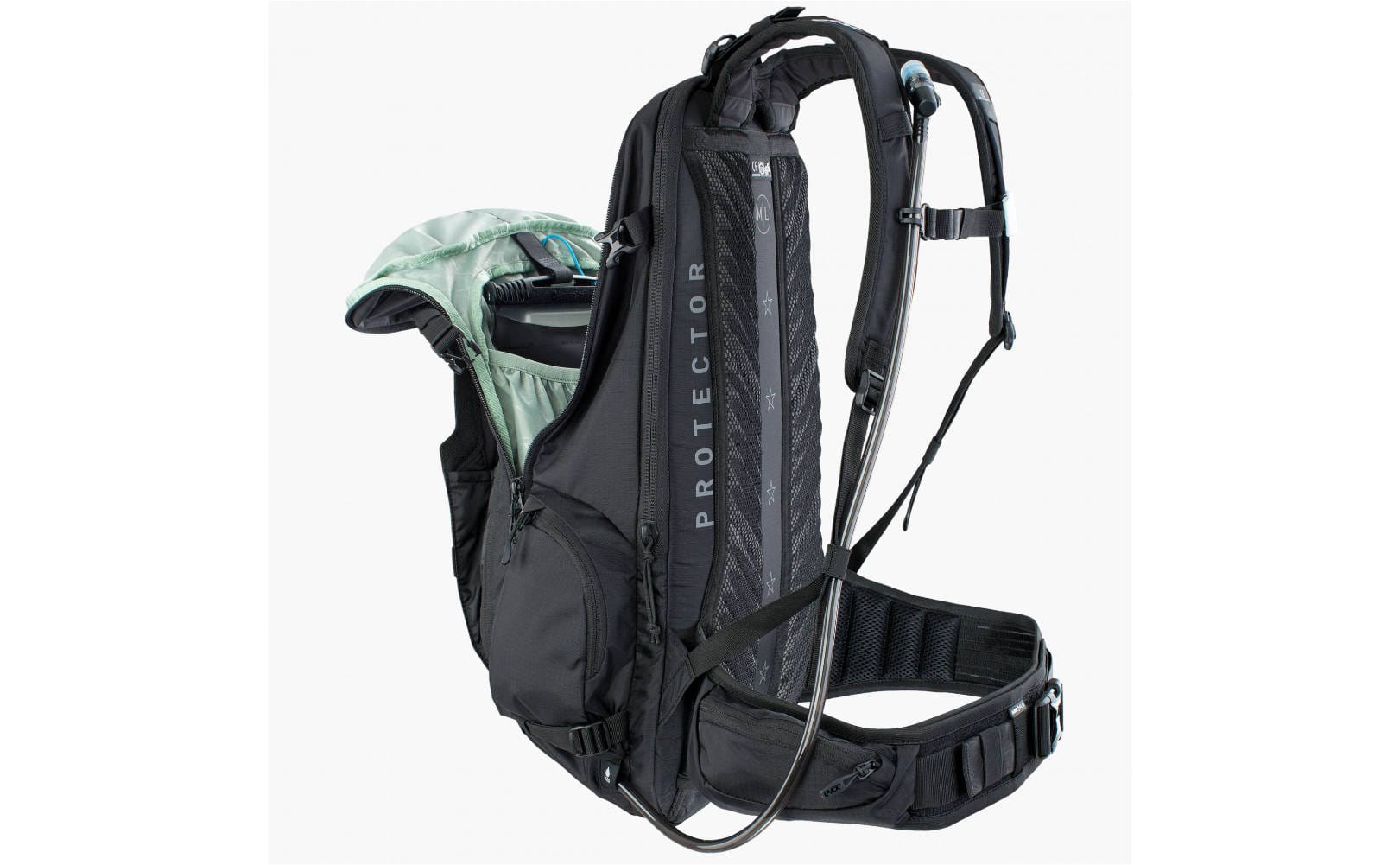 A protector backpack, specially designed to meet the needs of e-mountainbiking.