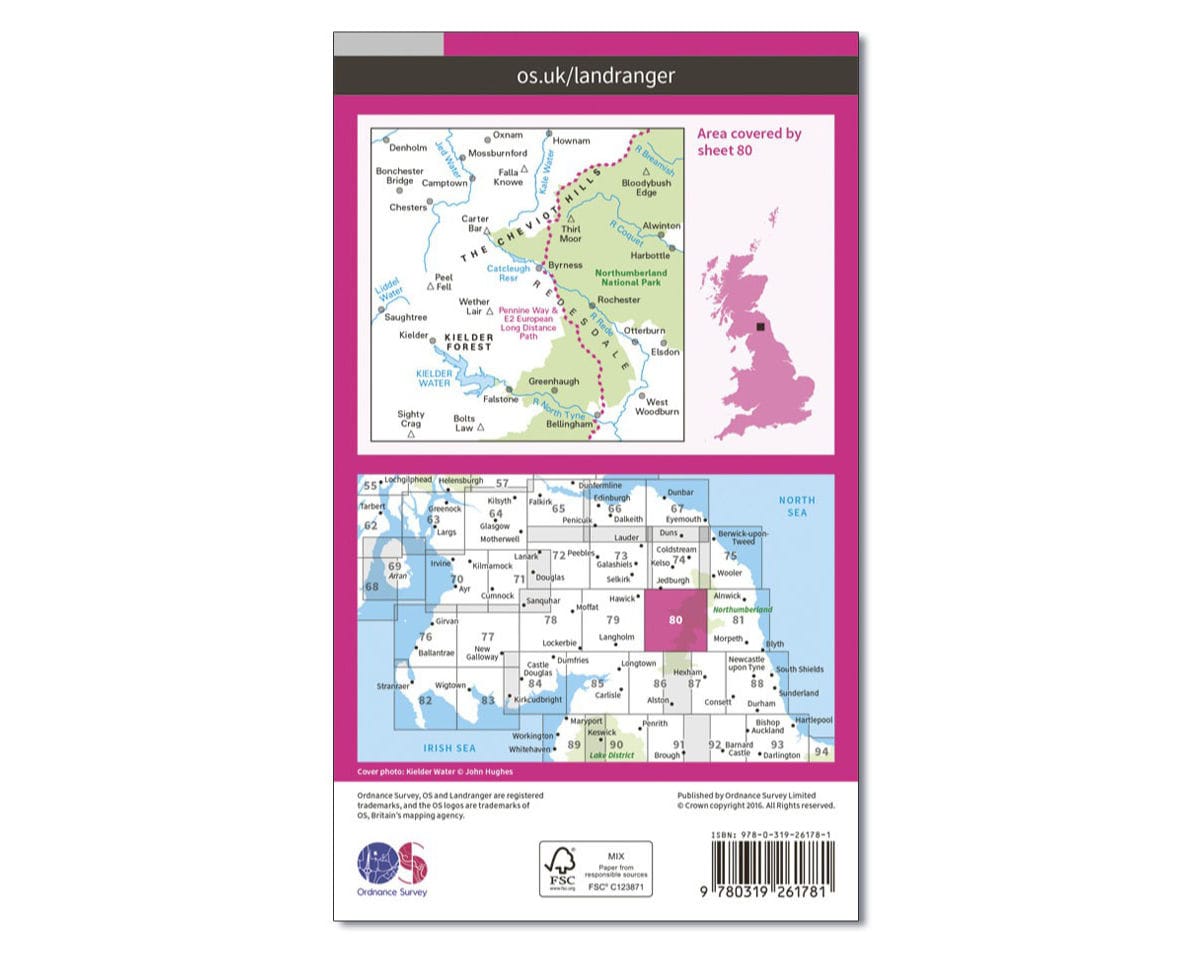 OS Landranger Sheet 80 – Cheviot Hills and Kielder Water